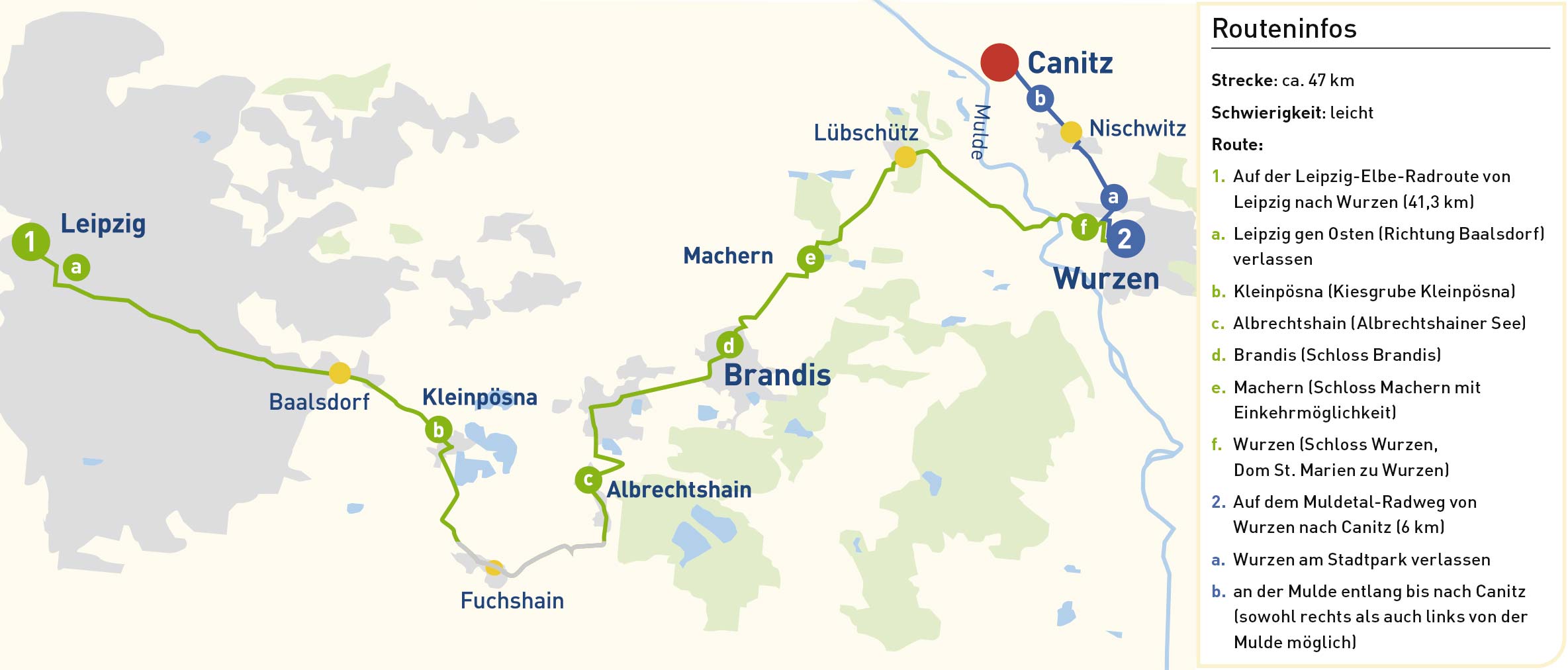 Doch nicht nur vor Ort, sondern auch während der Anfahrt über die Leipzig-Elbe-Rad-route und entlang der Mulde gibt es vieles zu entdecken. Von einer Abkühlung im Albrechtshainer See über einen Besuch im Schloss Machern bis hin zu einem Picknick in der naturbelassenen Muldenaue gibt es viele attraktive Etappenziele, bis man im Park Canitz angekommen ist.